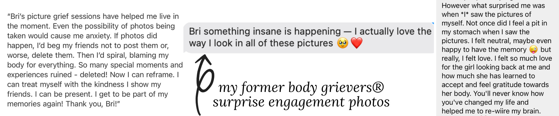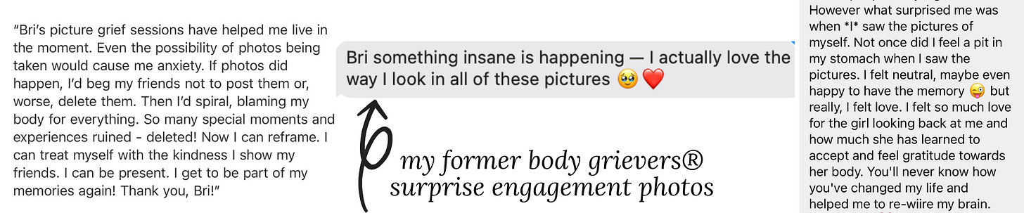 My body grievers® and I call this picture grief; an extension of the unavoidable + distressful body grief of body image when we see ourselves in pictures.